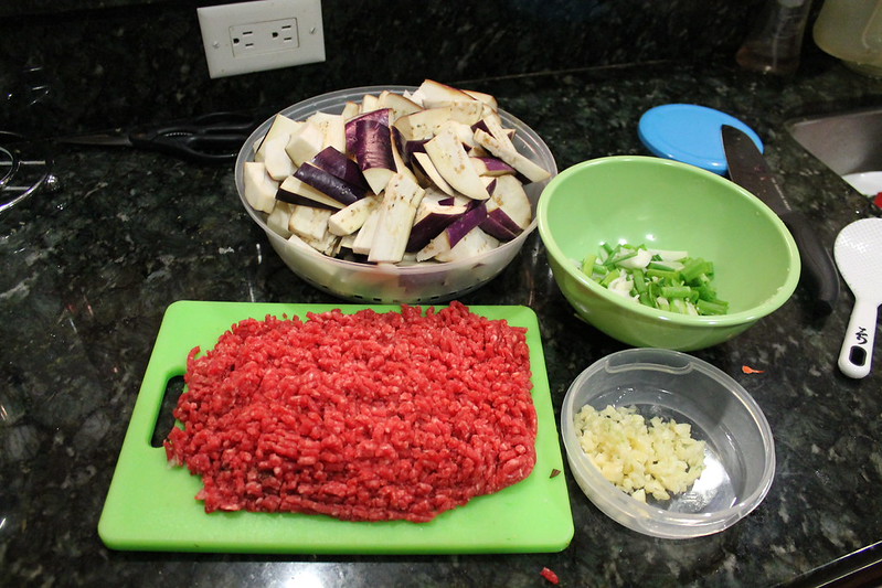 I made one of Eugene’s favorite dishes to celebrate the end of his midterm season. I believe it’s called “Sichuan” which is a Chinese eggplant dish.Â